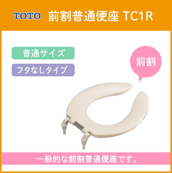 > 普通便座(フタなし前割タイプ) TC1R (レギュラー・普通サイズ) TOTO