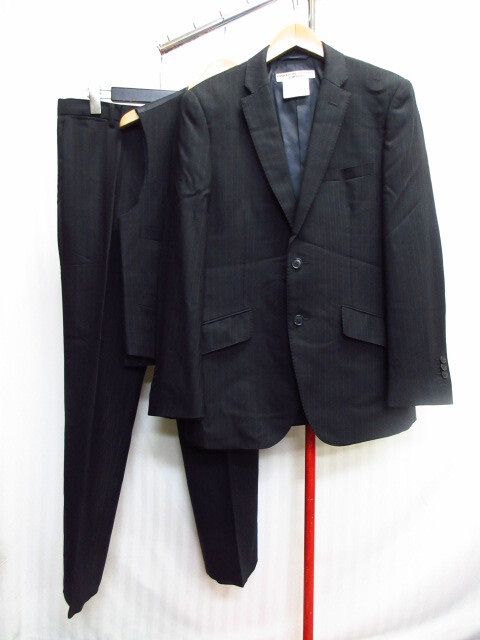 > キャサリンハムネット スーツ上下セットアップ メンズL 紺ストライプ柄ブレザー テーラードジャケット スラックスパンツ ズボン 10103