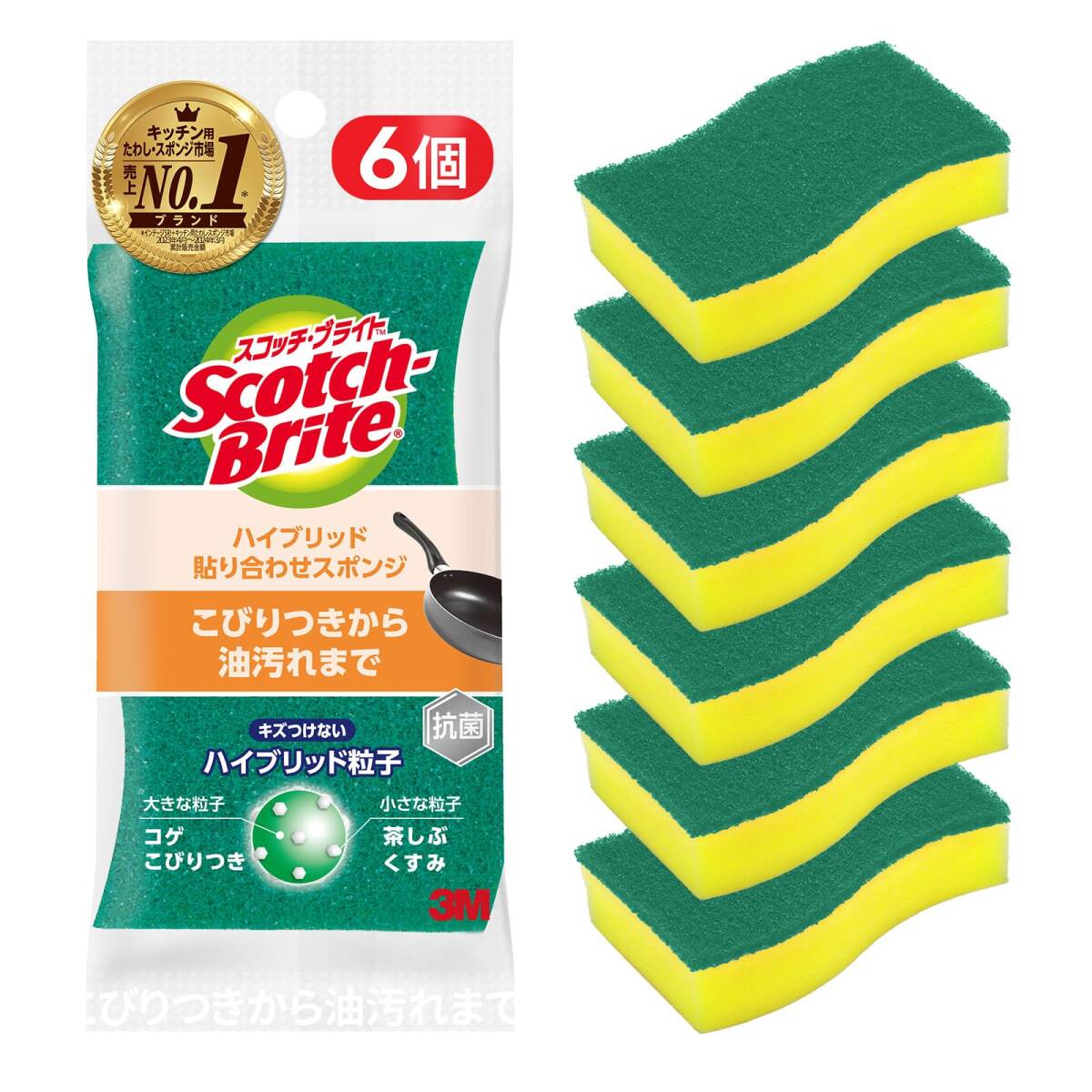 - 3M スポンジ 食器洗い キッチン キズつけない 抗菌 ハイブリッド グリーン 6個 スコッチブライト HB-21KG-H-6P