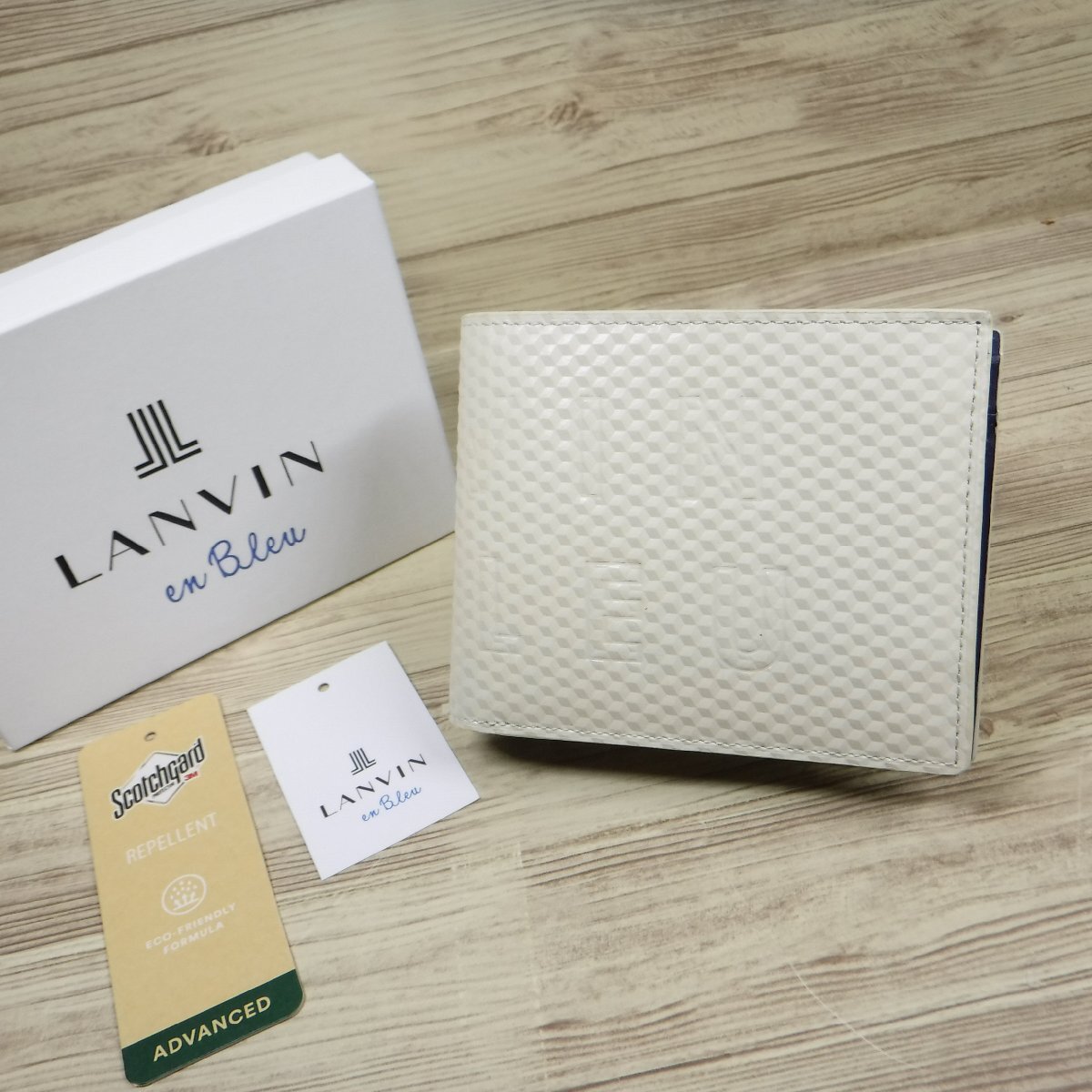 > QQ670 ランバンオンブルー 定価1万7600円 新品 二つ折り財布 撥水レザー 牛革 LANVIN en Bleu カード6枚収納 ディジョン 546603 アイボリー