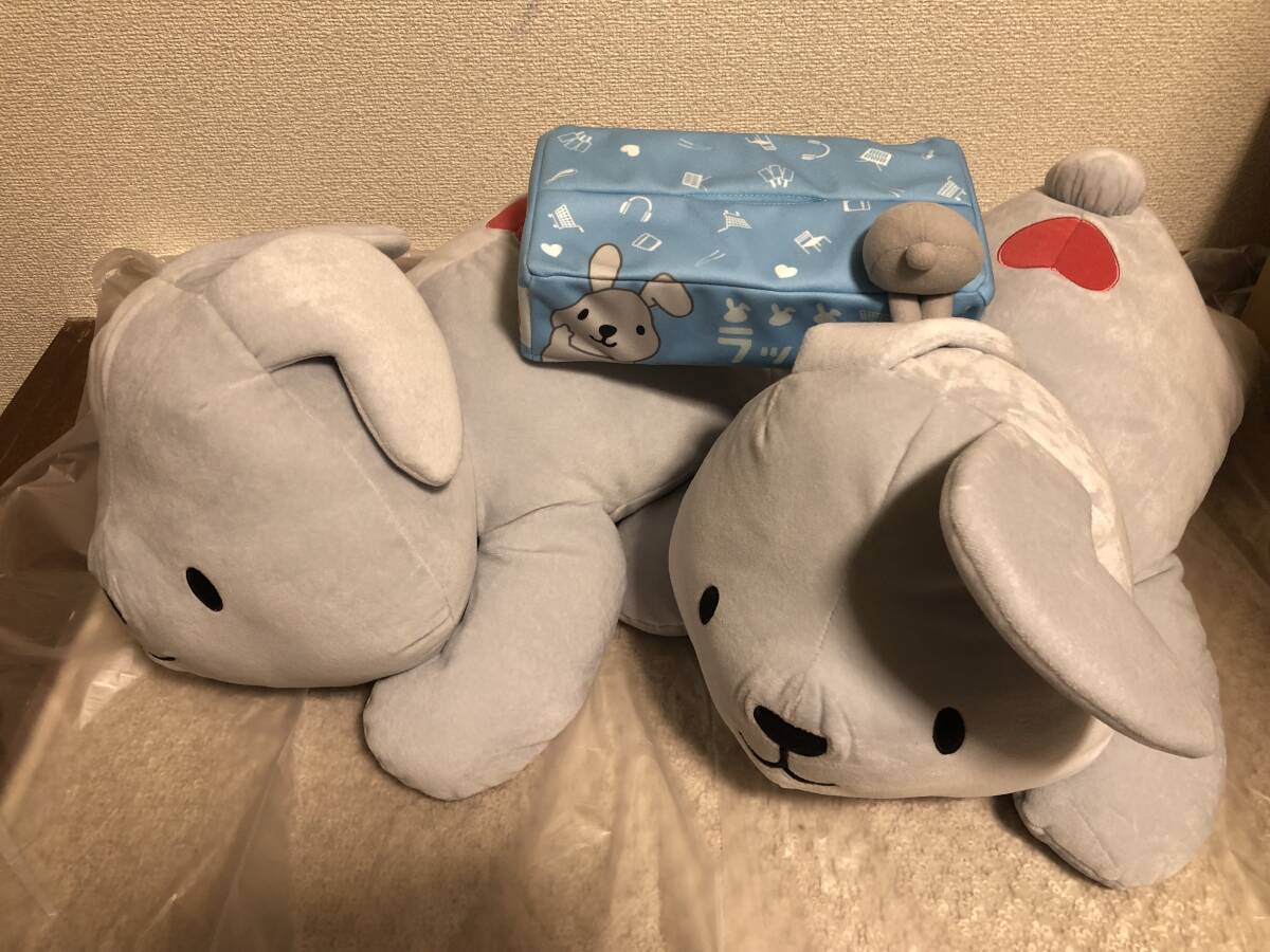 - ☆送料出品者負担 TBS ラヴィット ラッピー 寝そべり スーパーラージ ぬいぐるみ×2 約55cm プレミアムティッシュボックスカバー☆