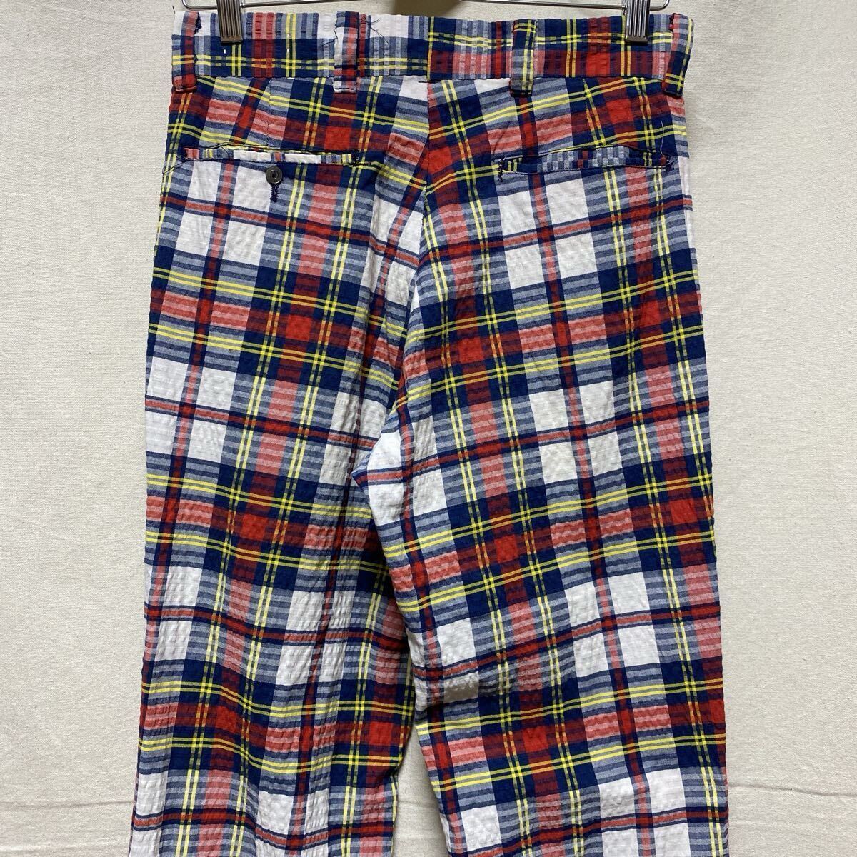 - オールド MW シアサッカー チェック柄 トラウザー 70s 80s 古着 ヴィンテージ スラックス フレア パンツ タロンジップ