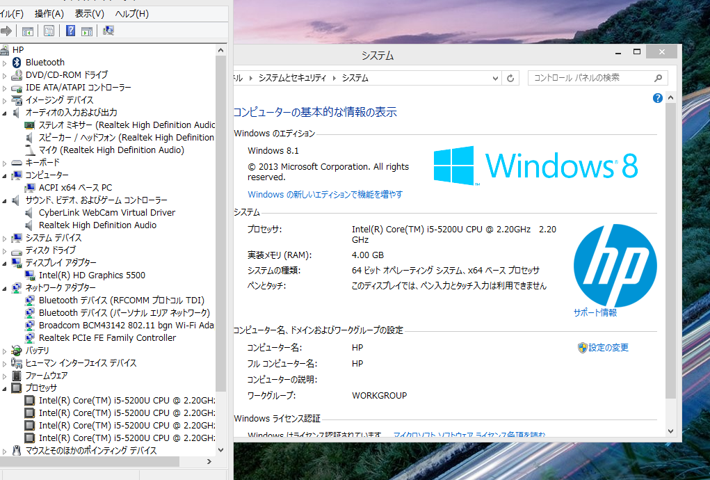 - Windows 7,8,10 OS選択可 hp Pavilion 15-p220TU TPN-Q140 Core i5-5200U/メモリ4GB/1TB/DVDマルチ/無線/カメラ/便利なソフト/リカバリ作成