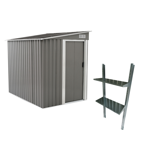 - 【可動棚付き】物置 屋外 スチール 倉庫 戸外収納庫 幅153*奥行き206*高181 可動棚付き 物置き おしゃれ 大型 収納庫 庭【ダークグ KU358