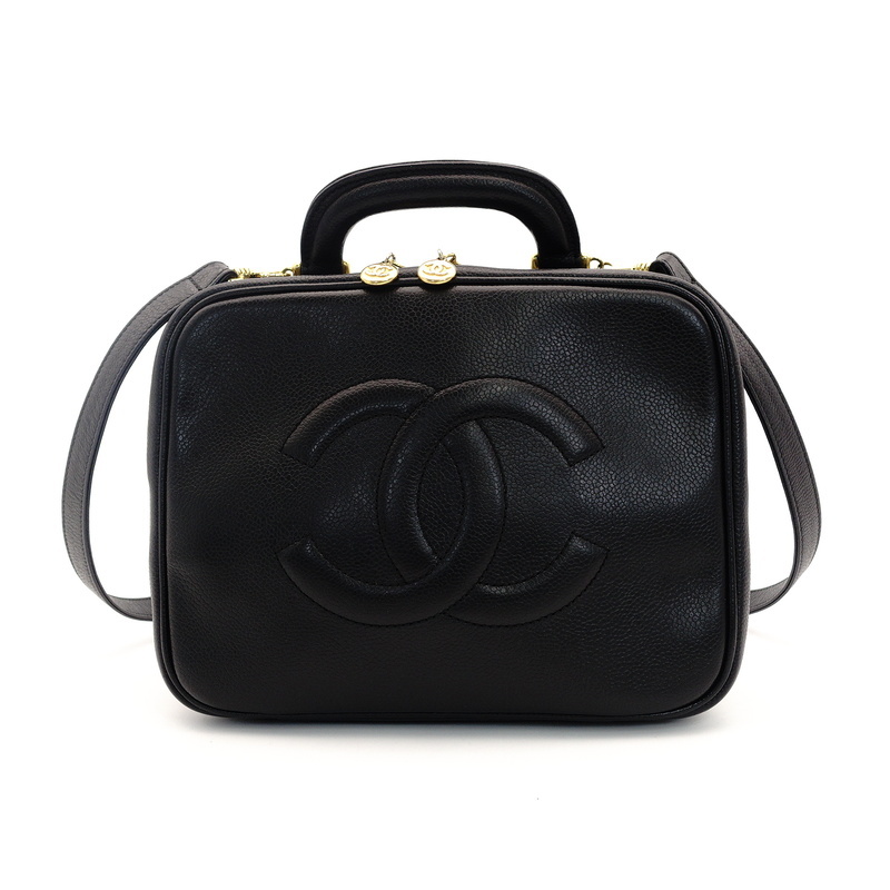 > シャネル CHANEL ハンドバッグ キャビアスキン バニティ 黒 レザー ブラック 2way クロスボディ 7-8-757