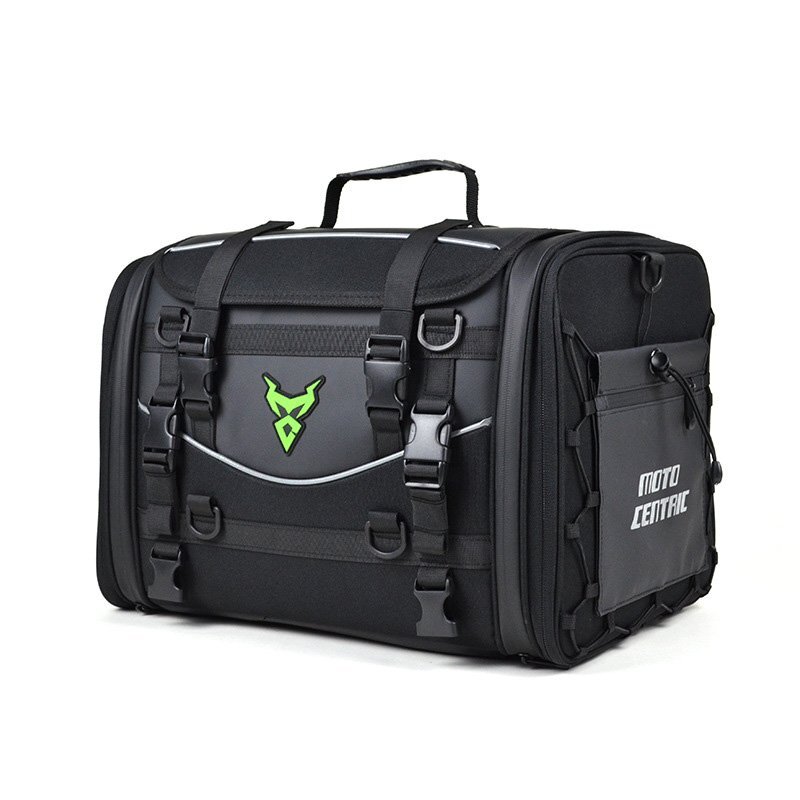 - シートバッグ 容量M(35-50L) 拡張機能 防水 汎用ツーリングバッグ 反射テープ/カバー/ショルダーベルト/固定ベルト付き 収納 黒緑