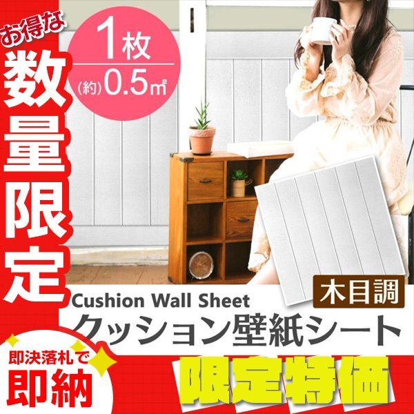 > 【限定セール】ホワイト 1枚 木目調 クッションシート 約70×70cm 壁紙シール おしゃれ 簡単 DIY クッション フォームブリック