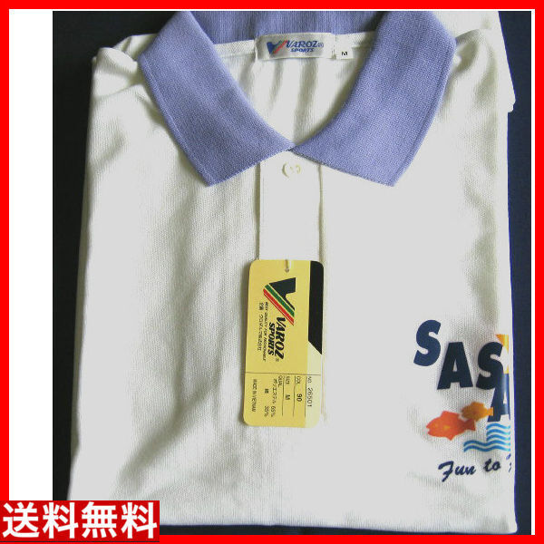 - [釣具 半袖] ササメ[ 処分品 染有 注意点有]< ポロシャツ 半袖 白×襟: 薄紫 L> ( 左胸+ 左袖 ⇒ロゴあり) 送料無料 ◆-33
