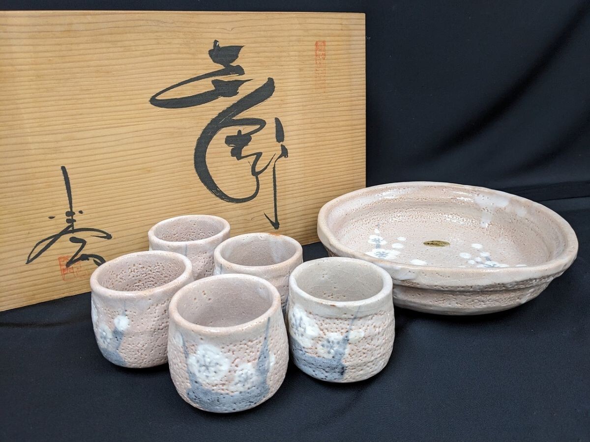 商品名・志野 半右衛門窯 菓子器 湯呑五客