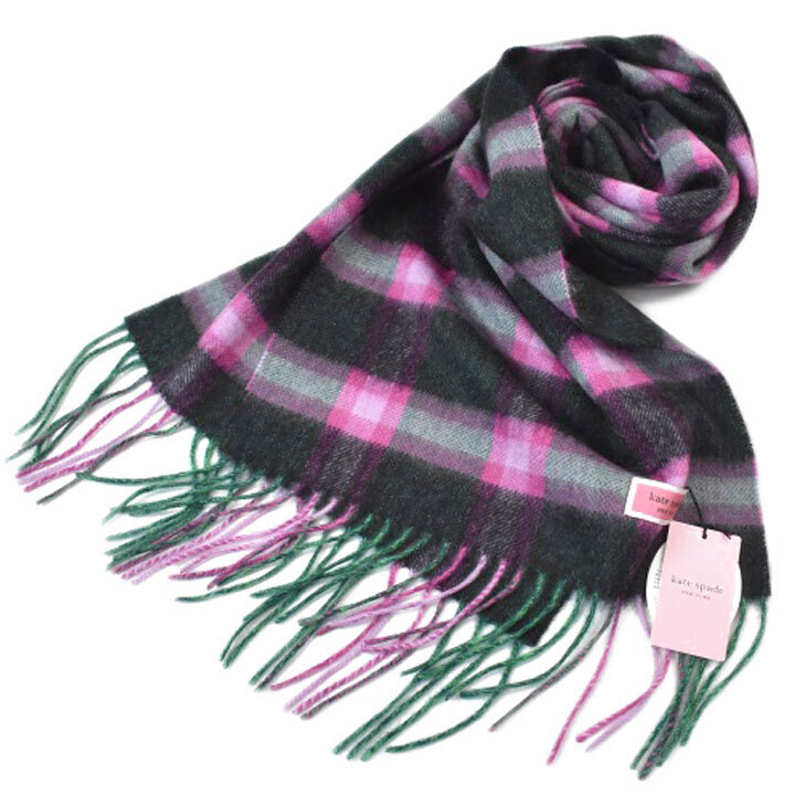 > マフラー レディース ケイト スペード ニューヨーク ブランド カシミヤ 100 チェック ピンク グリーン 女性 婦人 防寒