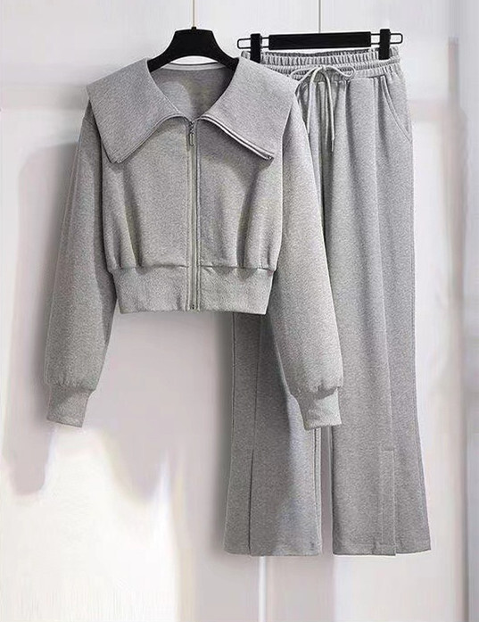 - ジャージ レディース 長袖 上下セット スウェット パンツ 運動着 部屋着 スポーツ ルームウェア グレー XL