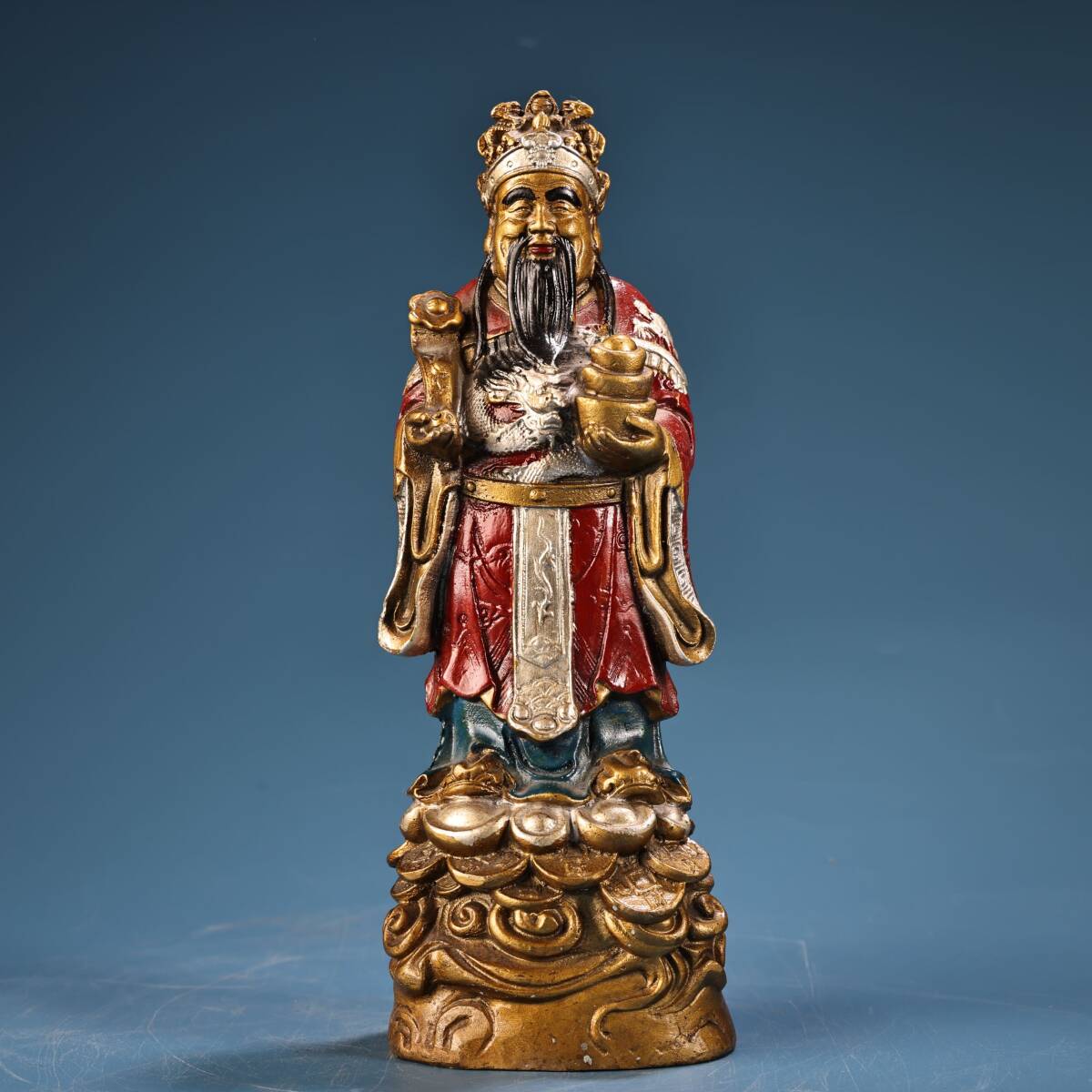 - ▽鴻▽ 銅製 描金 彩繪 財神站像 仏像 宗教 仏教古美術 供養品 古賞物 古董品 時代物 稀少珍品 中国古玩 中国古美術