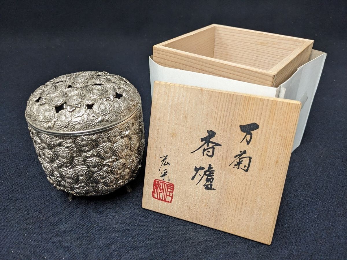 商品名・高岡銅器 佐野宏采 銅造鍍銀 万菊香炉