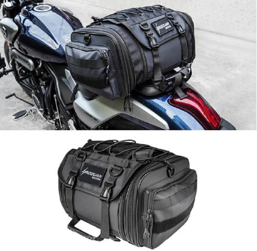 - バイク用バイクシートバッグ 汎用 拡張機能20L-27L ツーリングバッグ 簡単固定 撥水 耐傷 リアボックス 折りたたみ収納 装着簡単 黒