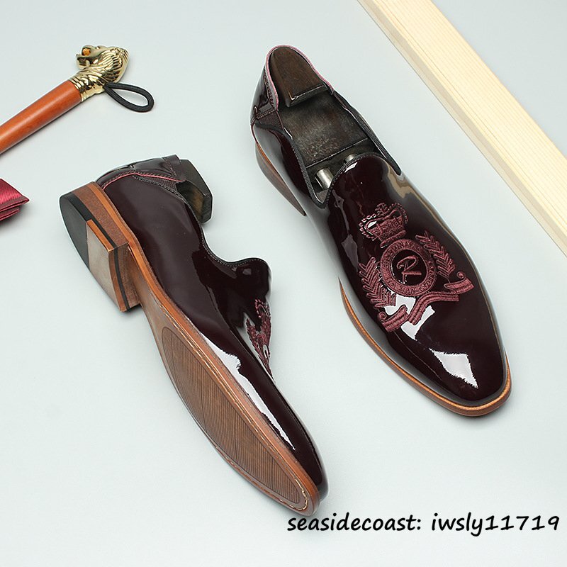 - 超希少★最高級 ビジネスシューズ 刺繍 職人手塗仕上げ 彫り 本革 レザーシューズ 紳士靴 フォーマル 牛革 革靴 紳士靴 レッド 26.0cm
