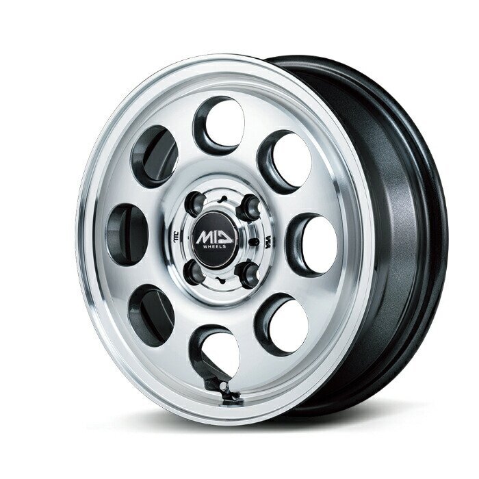 - MID WHEELS GARCIA Palm8 アルミホイール4本セット 14x4.5J 4H PCD100 +45 (ガルシア パームエイト メタリックグレー/ポリッシュ)
