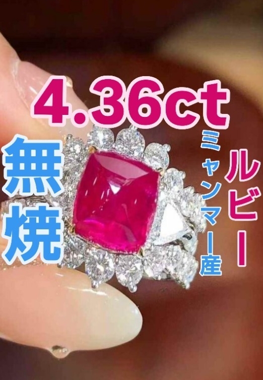 > 4.36ctミャンマー産無処理無焼非加熱ノーヒートルビー リング18K× ダイヤモンドセッティング神々しいまでの赤神の輝きミャンマールビー
