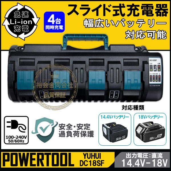 > ★送料無料・30日間保証付き★ 4口充電器 マキタ 互換充電器 14.4V-18V リチウムイオンバッテリ用 マキタ バッテリー 4個同時充電