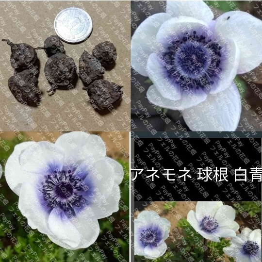 - 青白配色アネモネ 清楚で綺麗な発色 球根1球 ホワイトインブルー
