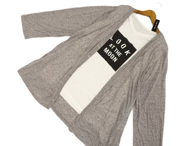 > 大きいサイズ メンズ 新品タグ付 vide et bois 洗える長袖カーディガン+半袖Tシャツ 2点セット 7L グレー杢/オフホワイト地 英字