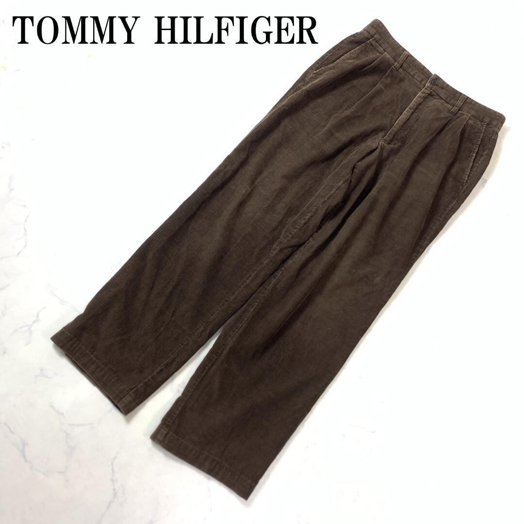 - LA7840 トミーヒルフィガー TOMMY HILFIGER ワンポイントブランド刺 タック入り ストレッチ無し コットン コーデュロイパンツ ブラウン L