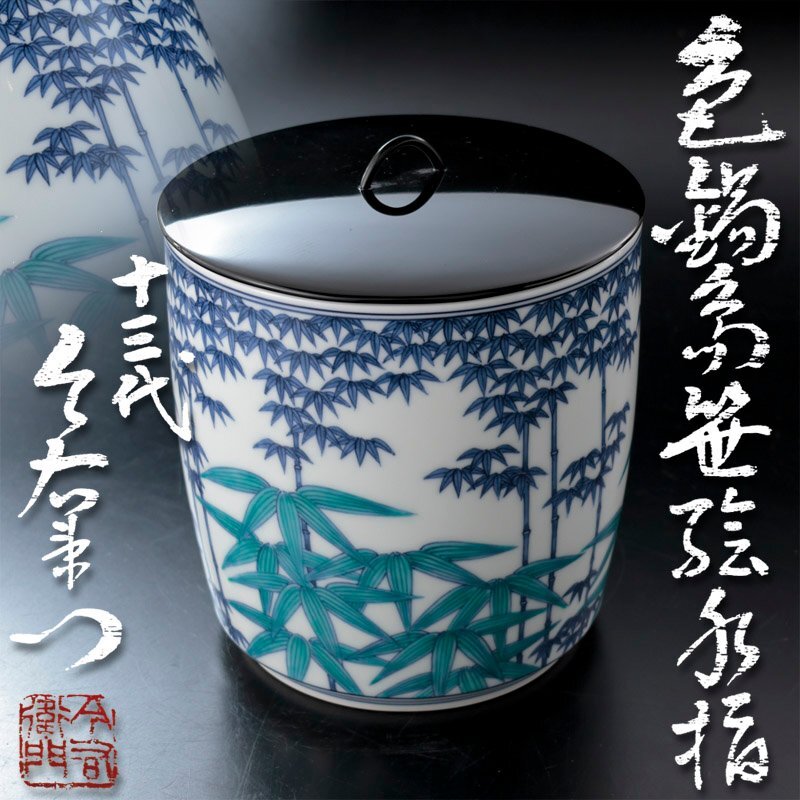 > 【古美味】人間国宝 十三代今泉今右衛門 色鍋島笹絵水指 本人作品!茶道具 保証品 u5BS