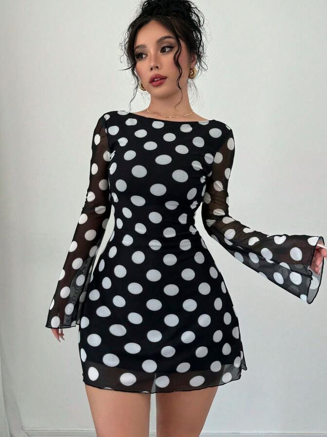 - M0530 ワンピースレディース● きれいめ 20代30代40代 ●着心地抜群 超人気 sexy 長袖 水玉 black