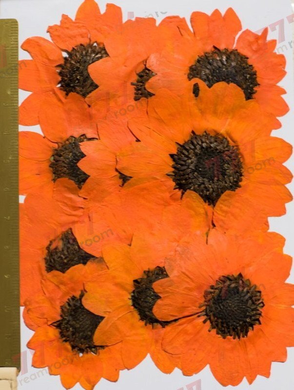 - 送料無料☆本物 押し花素材 ハンドメイド 花材 DR101O 押し花 ミニヒマワリ オレンジ染