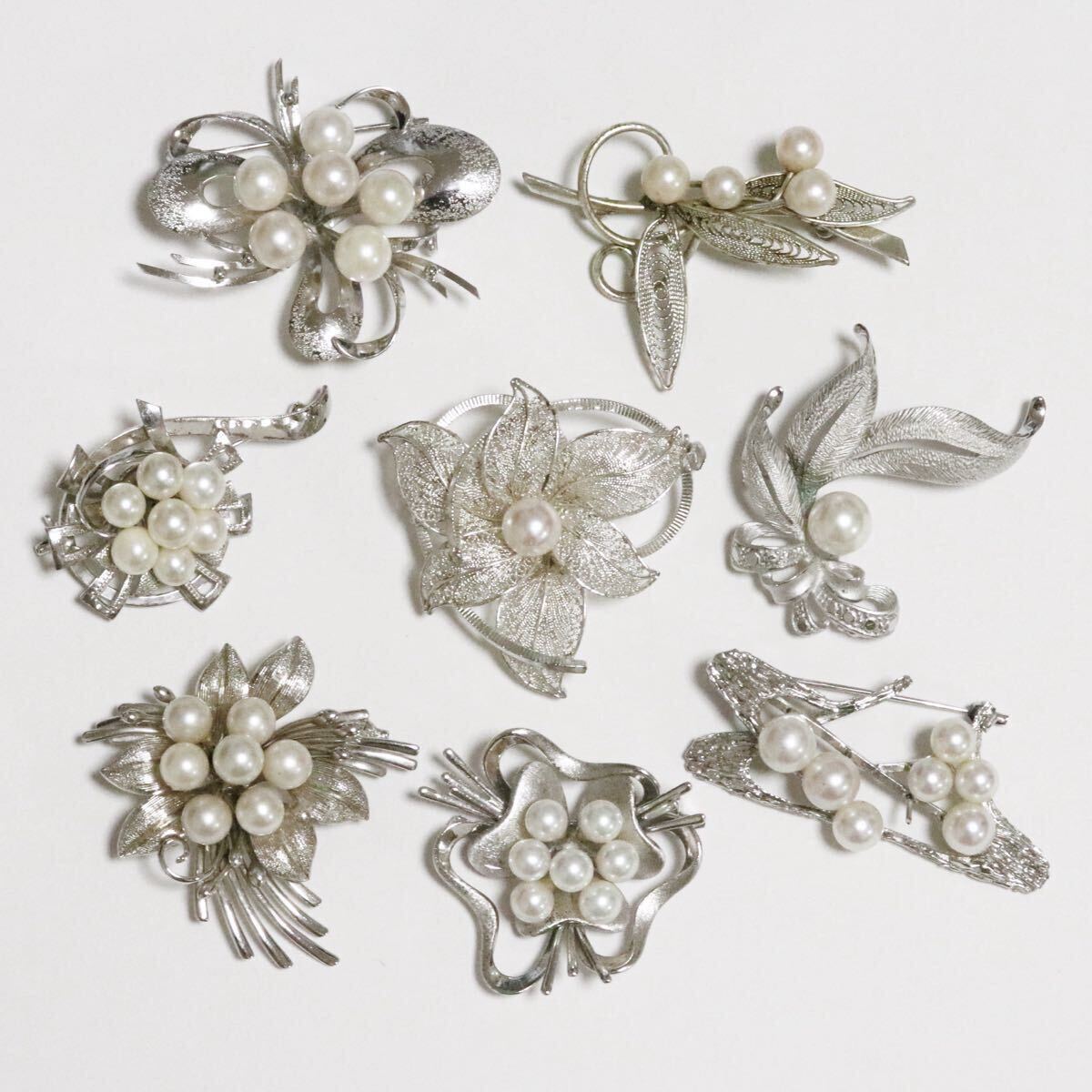 - ブローチ 8個 セット おまとめ パール シルバー 真珠 ★291