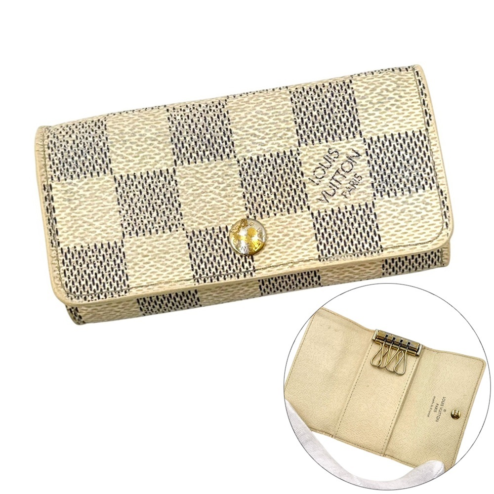 - ルイヴィトン キーケース N60020 ダミエ・アズール ミュルティクレ4 4連 スリム コンパクト ホワイト グレー LV ビトン レディース