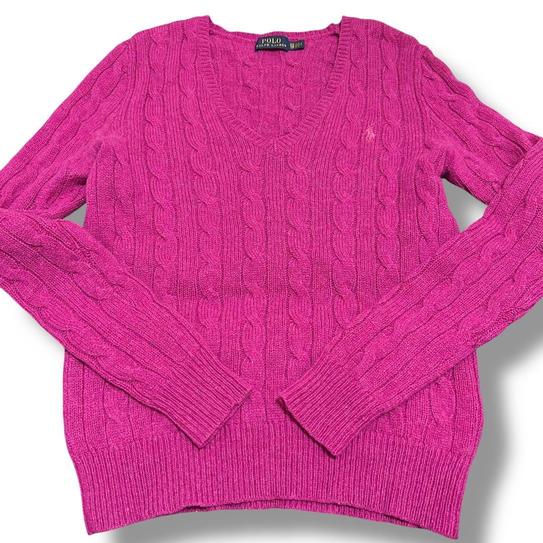 - ポロ ラルフローレン ニット Vネック カシミヤ ピンク XS ケーブル編み