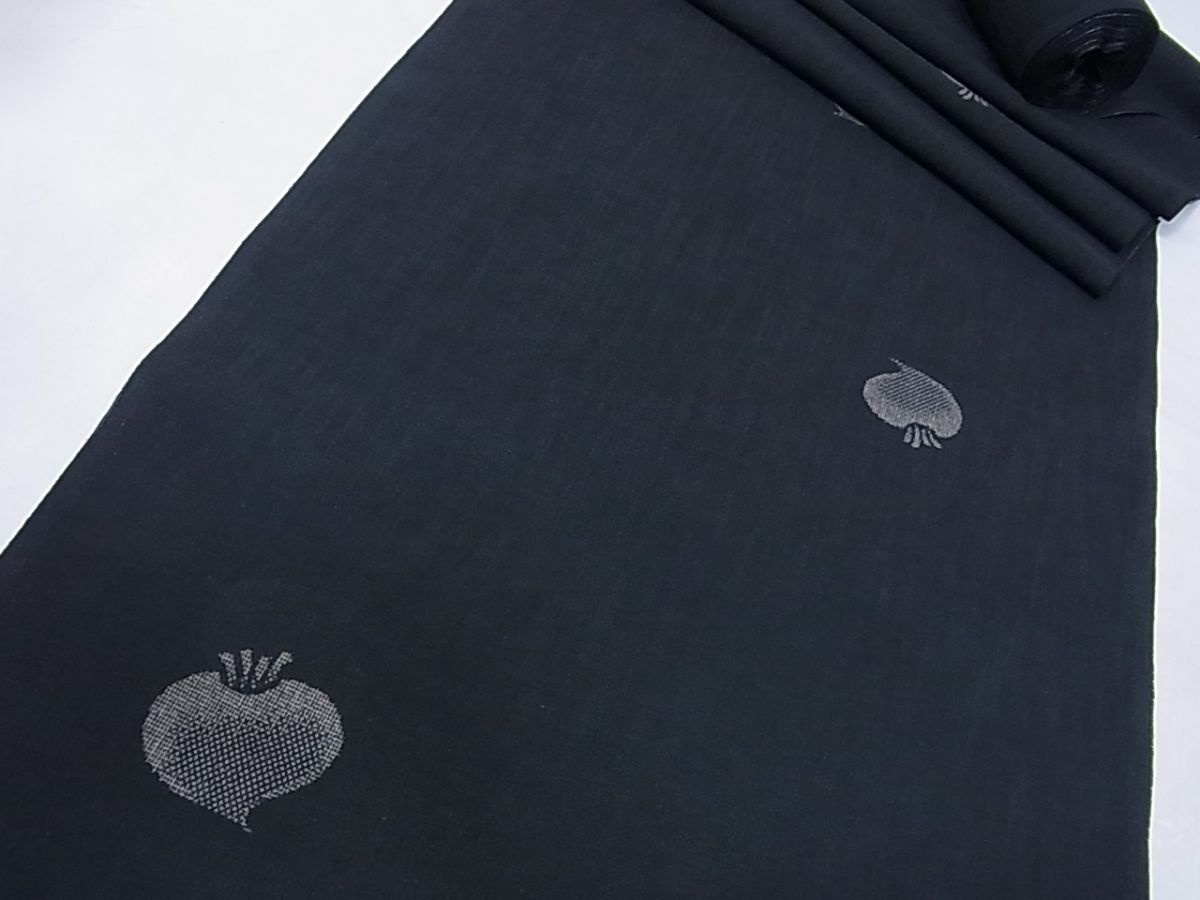 > eふれんず◆夏物 小紋 反物 着尺 紗 鳴り物 かぶ 黒色 未使用品 美品 未仕立て◆bm1830