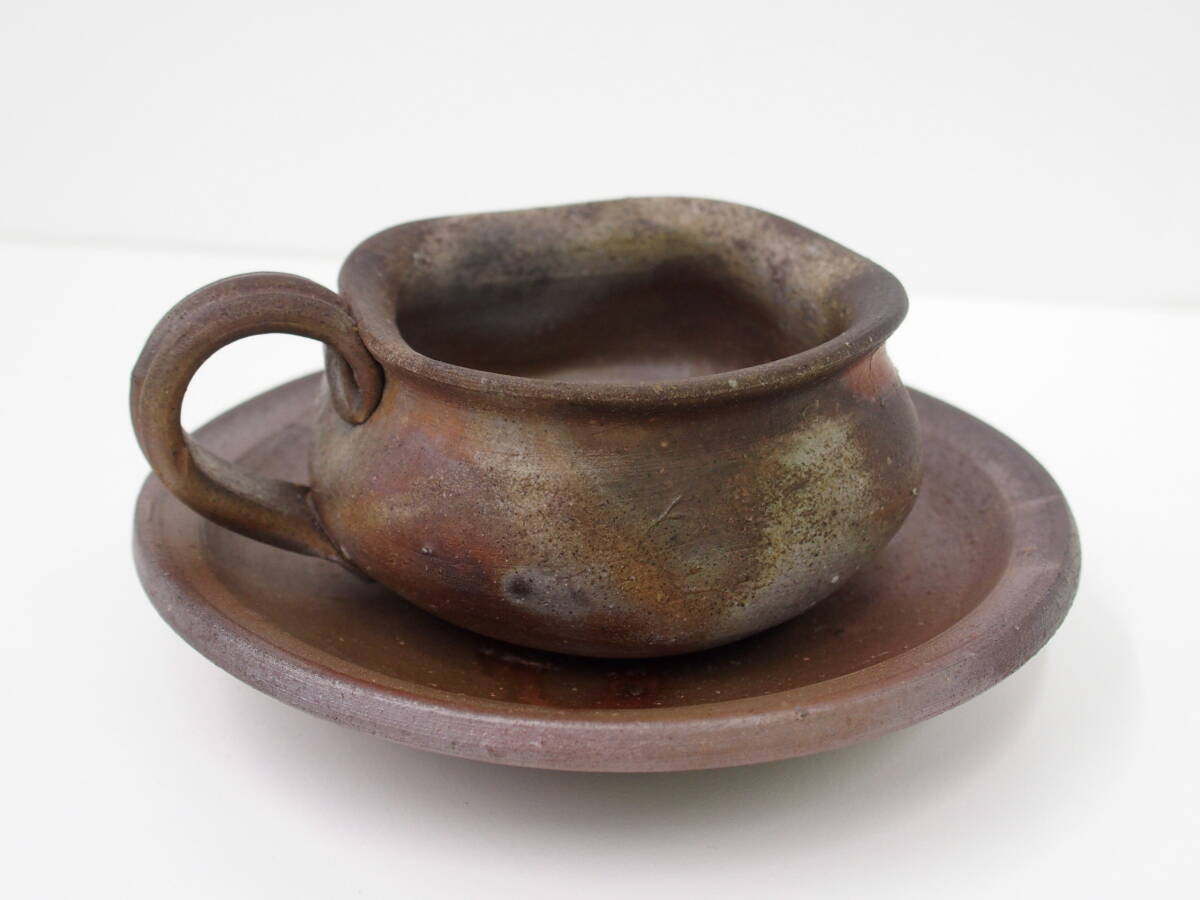 > 1179 骨董祭 備前焼 竹内靖之 コーヒーカップ&ソーサー 陶器 陶芸 コレクション 工芸品 食器 保管品