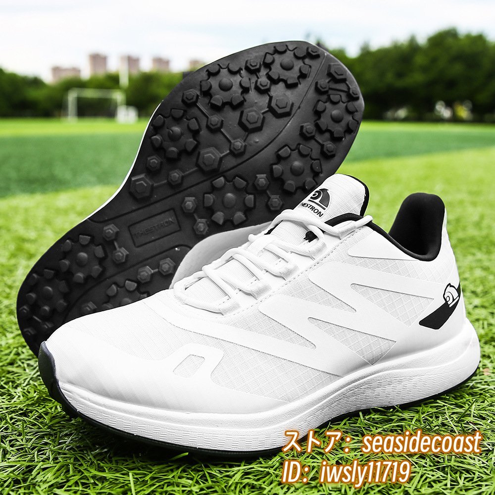 - 高級品■ゴルフシューズ 新品 スポーツシューズ 強いグリップ 運動靴 切替 メンズ 幅広 紳士 スニーカー 防滑 耐磨 通気性 ホワイト 25.5cm