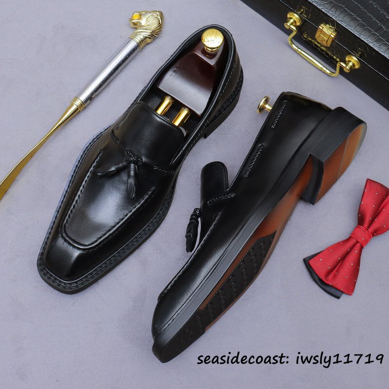 - 定価9万超■牛革 レザーシューズ 本革 ビジネスシューズ タッセルローファー 職人手塗仕上げ 紳士靴 フォーマル 革靴 新品 ブラック 26.0cm