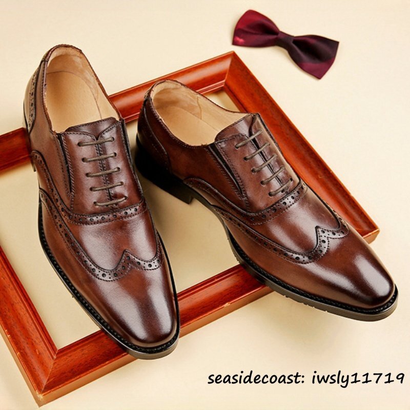 - 高級品■牛革 メンズシューズ ビジネスシューズ 職人手作り 彫り 本革 イギリス風 レザーシューズ ヴィンテージ 通勤 新品 ブラウン 24.5cm