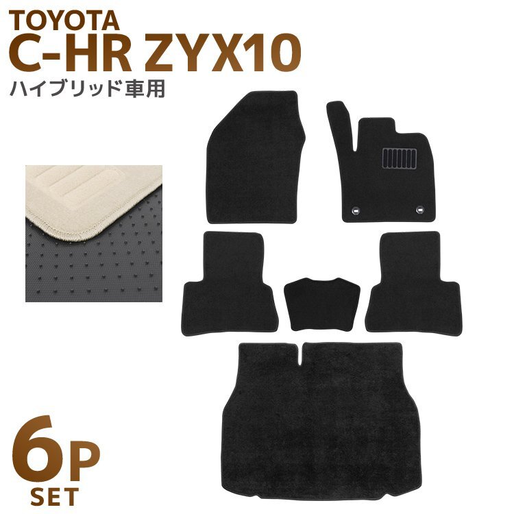- フロアマット 6点セット TOYOTA トヨタ C-HR ZYX10 ハイブリッド車用 ヒールパット付 難燃性素材 裏面スパイク カーマット ベージュ