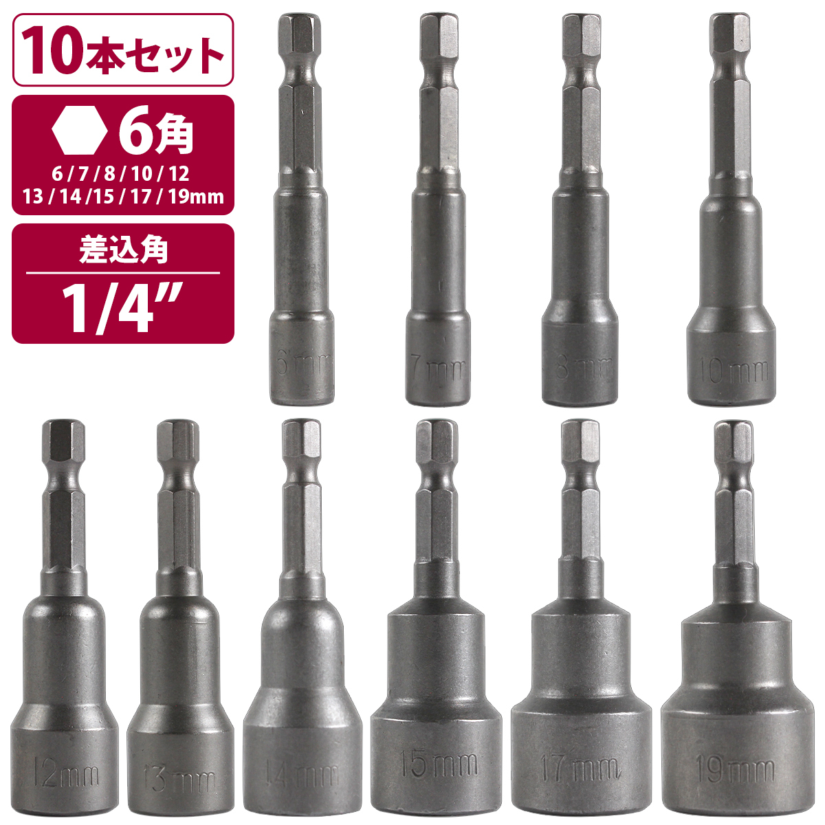 > 磁石付き 六角軸シャンク ソケットアダプター 10本 ソケットビット 電動ドリル 六角 ソケット 六角軸 インパクト ドライバー