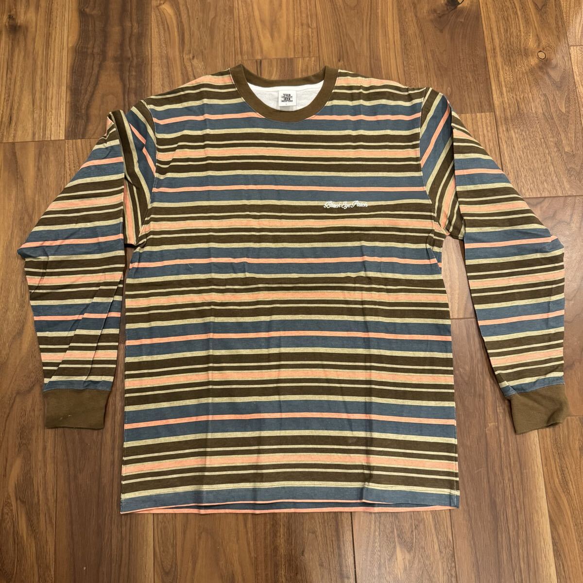 - black eye patch ブラックアイパッチ ボーダー 長袖 Tシャツ 茶 ブラウン ロンT L