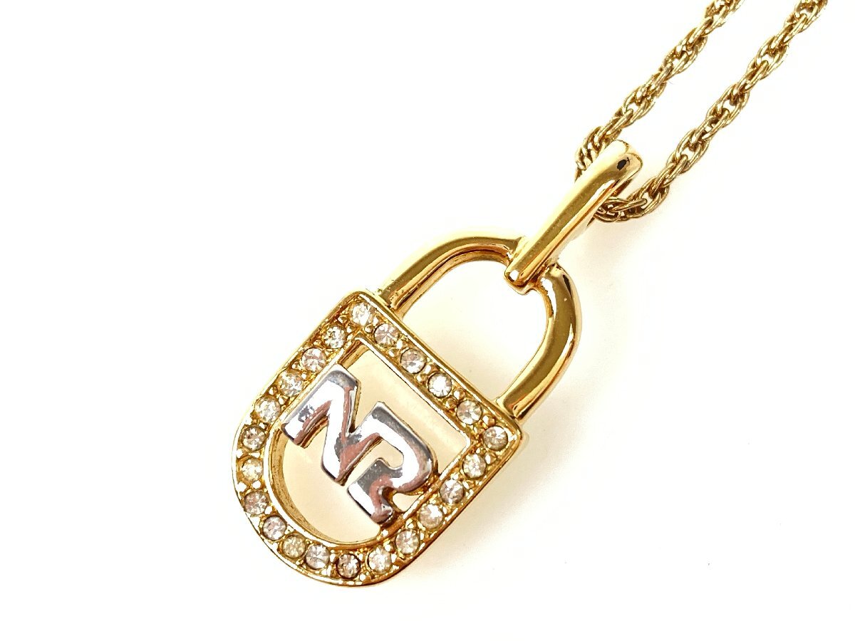 - ニナリッチ NINA RICCI カデナ型/南京錠 デザイン ネックレス ラインストーン ゴールドカラー YAS-11377