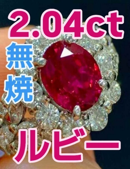 > 2.04ctマダガスカル産無処理無焼非加熱ノーヒートルビーピジョンブラッドPTリングAIGS鑑定書新時代の赤2.04ctが解き放つマダガスカルの奇跡