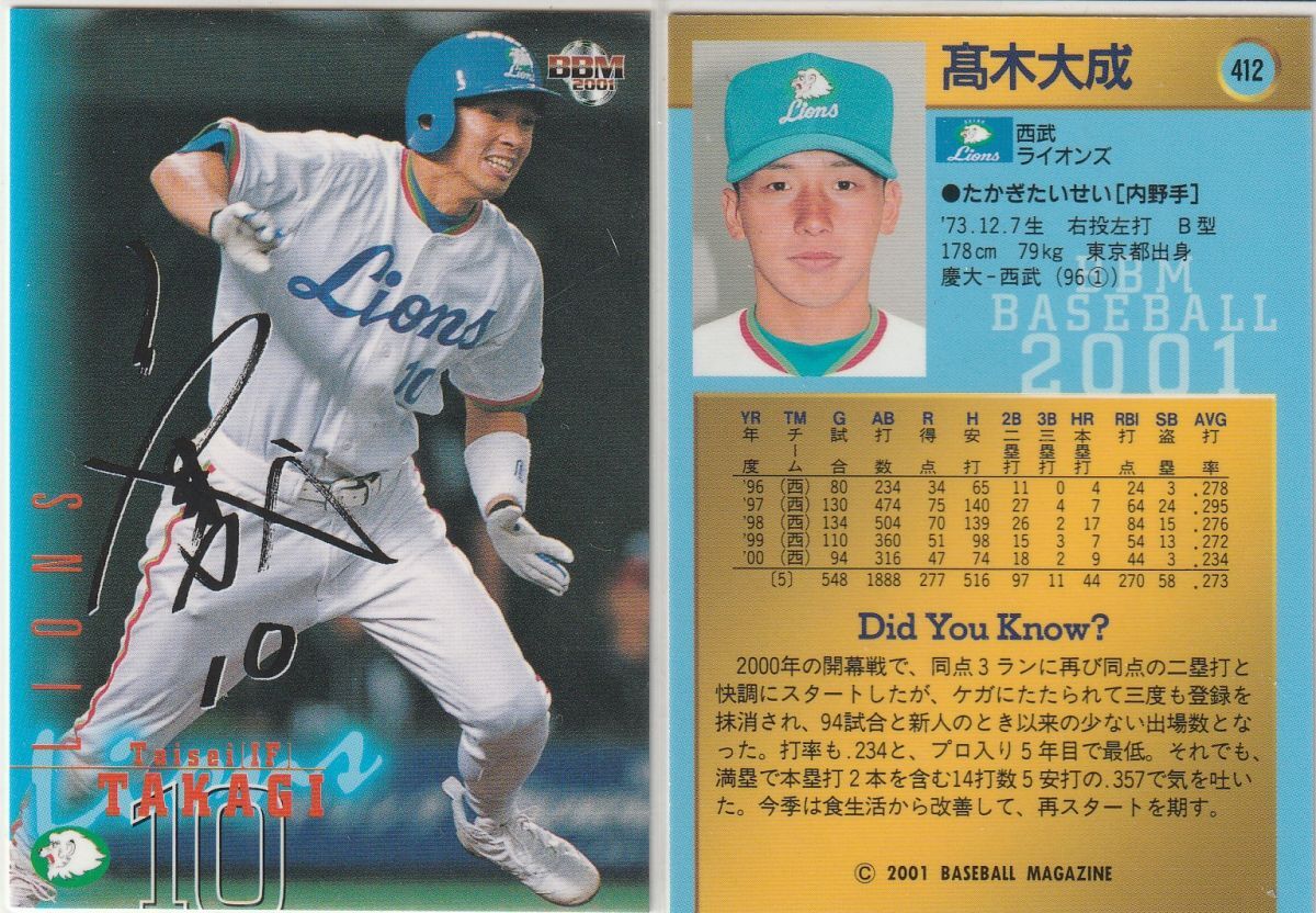 - ●2001BBM 【高木 大成】 サインパラレル No.412:西武 R5