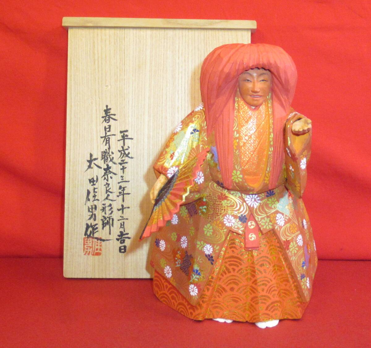 - 奈良一刀彫『春日有職奈良人形師 太田佳男作 木彫「猩々」桐共箱 在銘「佳男作」』(高さ22,5㎝)コレクター放出品
