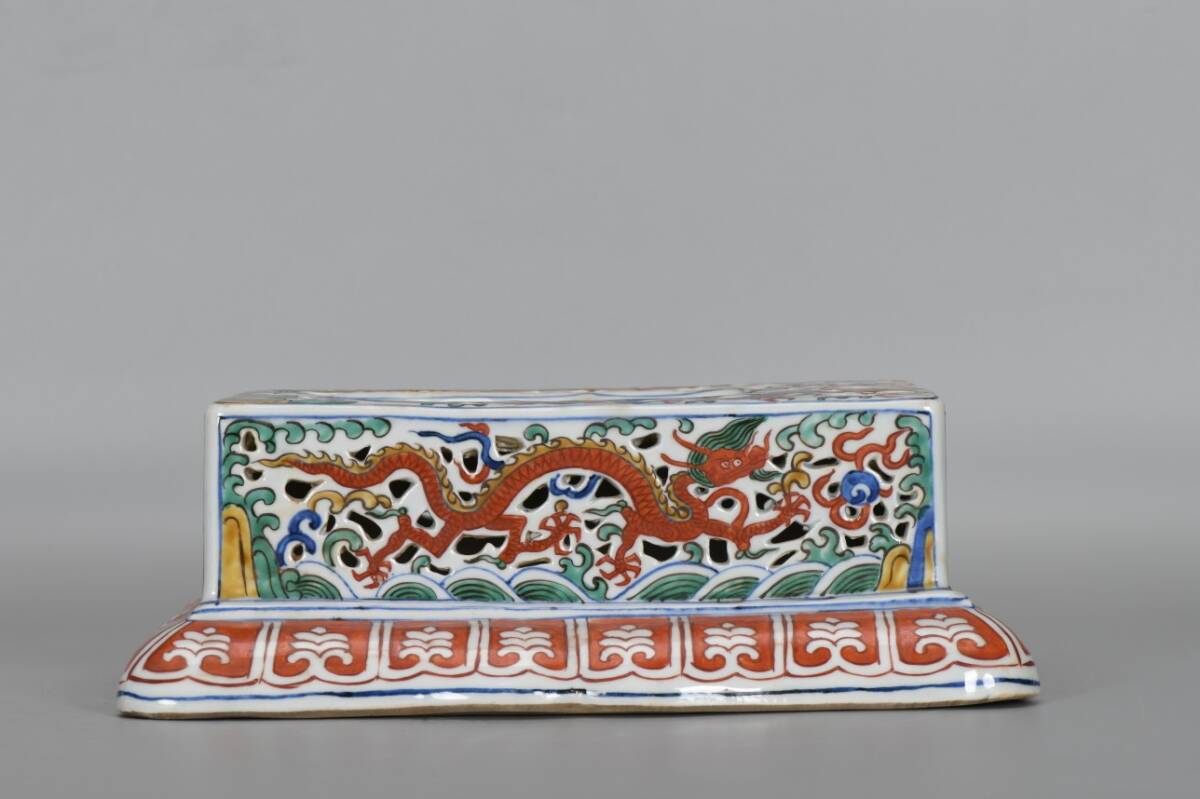 > ◆珍蔵◆中国古美術 大明万歴年製款 五彩 古陶磁 龍紋硯台盒 細密細工造 置物 擺件 古賞物 骨董品 時代物 A04