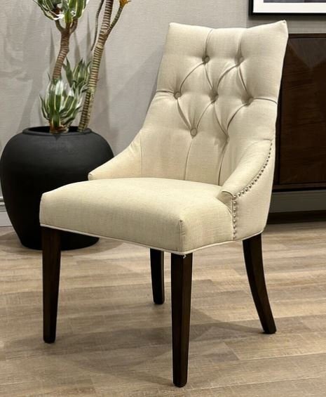 落ち着いた色調のファブリックが素敵なダイニングチェアです。