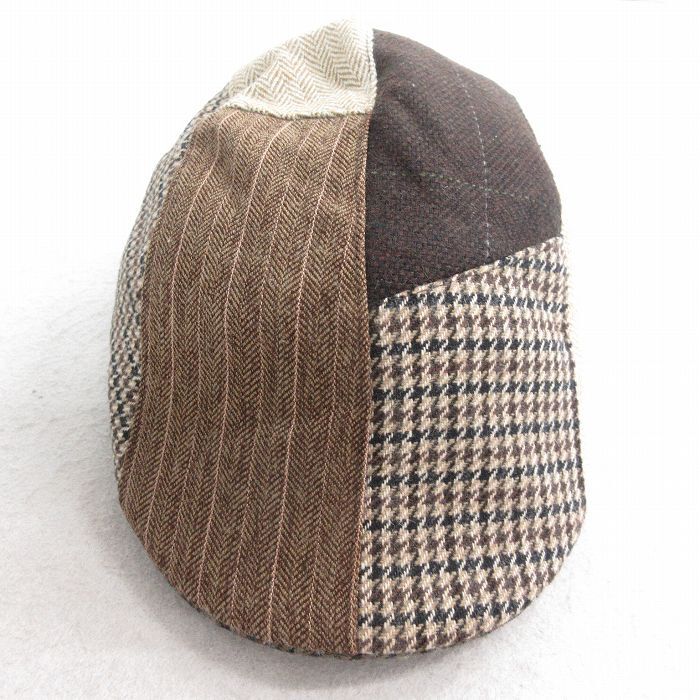 - 中古 ハンチング 90s パッチワーク ウール 茶他 ブラウン 25oct14