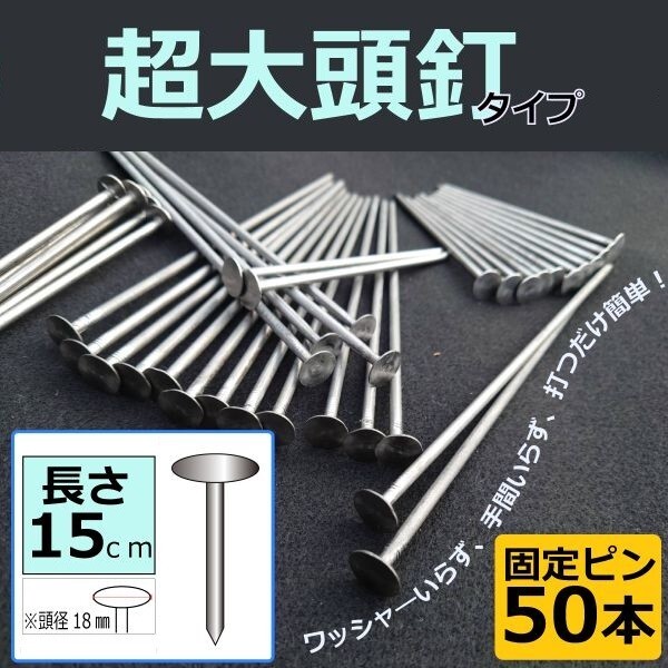 - ■即決1000円■(超大頭釘タイプ15cm50本) 固定ピン 雑草防止 除草 厚手 留め具 防草シート用 止め 施工 ロング