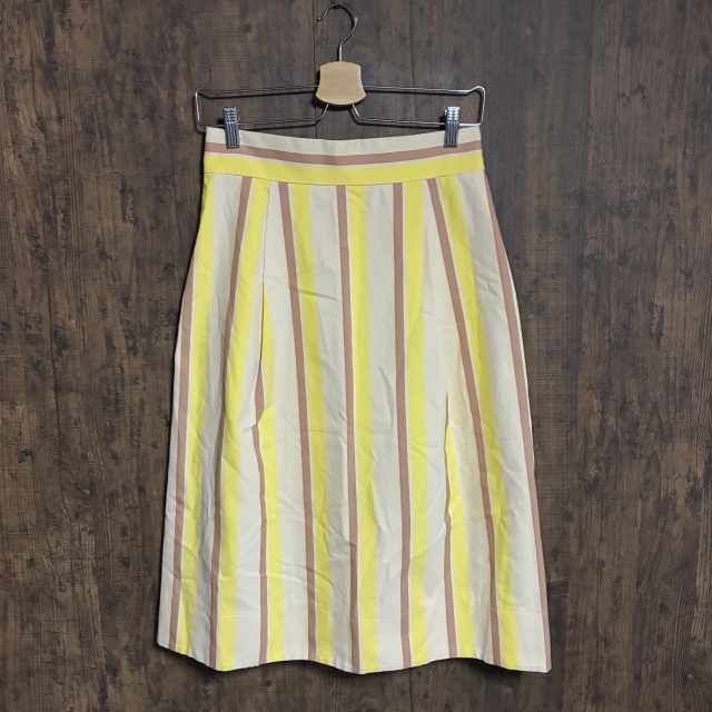 - C49◇UNTITLED | アンタイトル ストライプスカート ベージュ×イエロー×ブラウン レディース 2サイズ 中古品