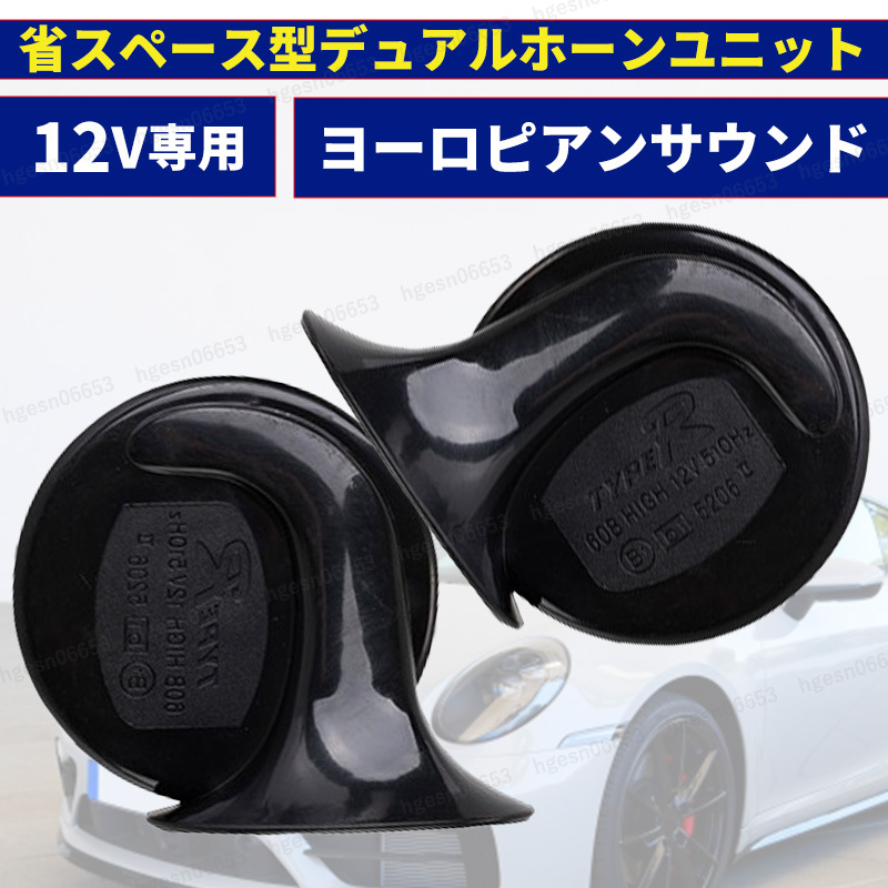 > ヨーロピアンホーン サウンドホーン クラクション 電子ホーン プレミアムサウンド ブラック 12V 爆音 LEXUS レクサス 汎用 省スペース