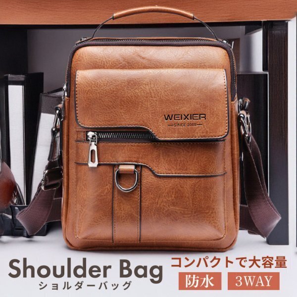 - WEIXIER ショルダーバッグ メンズ ビジネス カジュアル レトロ 多機能 アンティーク 大容量 ブラウン ビンテージ ファスナー付きポケット